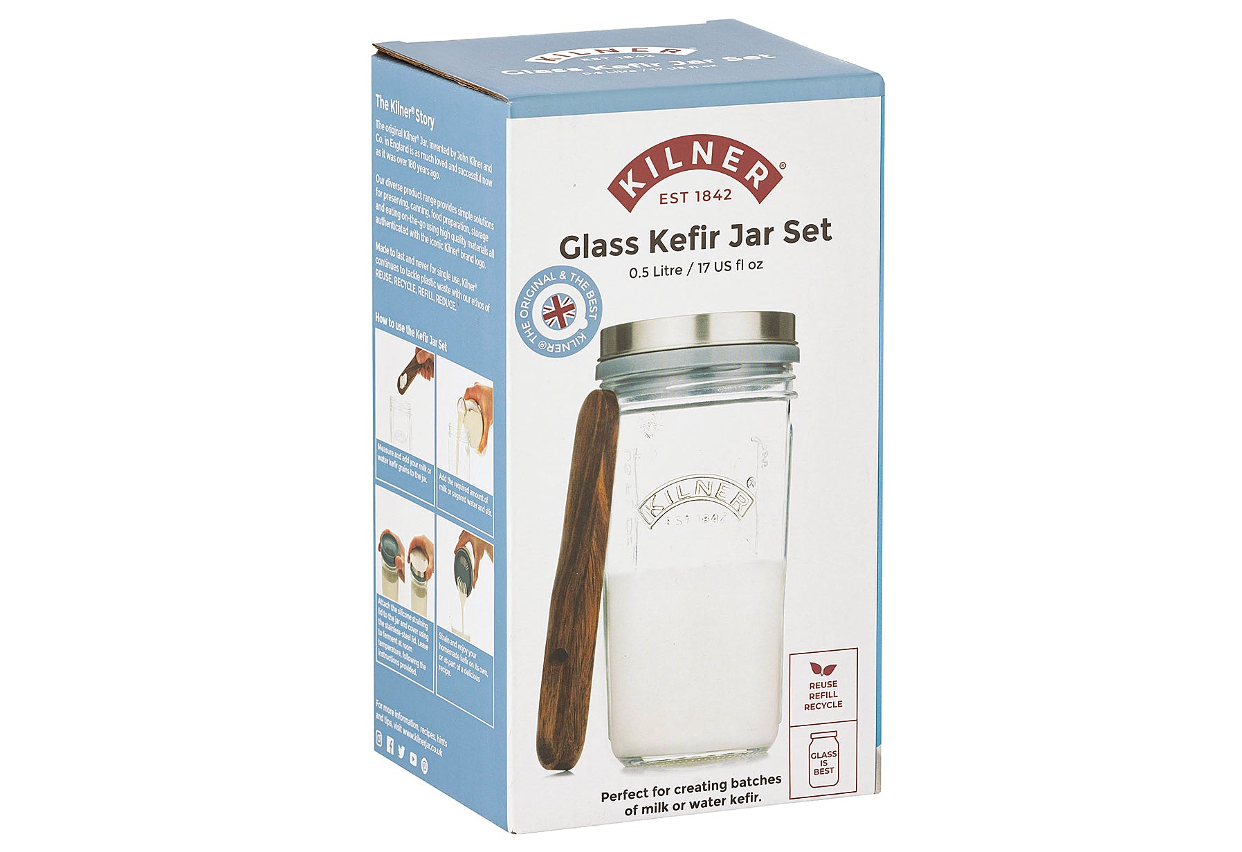 Das einzigartige Kefir Set beinhaltet ein 0.5L Kilner Glas, einen Silikon - Siebaufsatz mit verschieden großen Lo?chern, um den Kefir ohne die Kefir - Ko?rner problemlos umfu?llen zu ko?nnen und eine Edelstahl - Verschlusskappe, um das Glas zu verschließen, sobald der Fementierprozess fertig ist. 500 ml