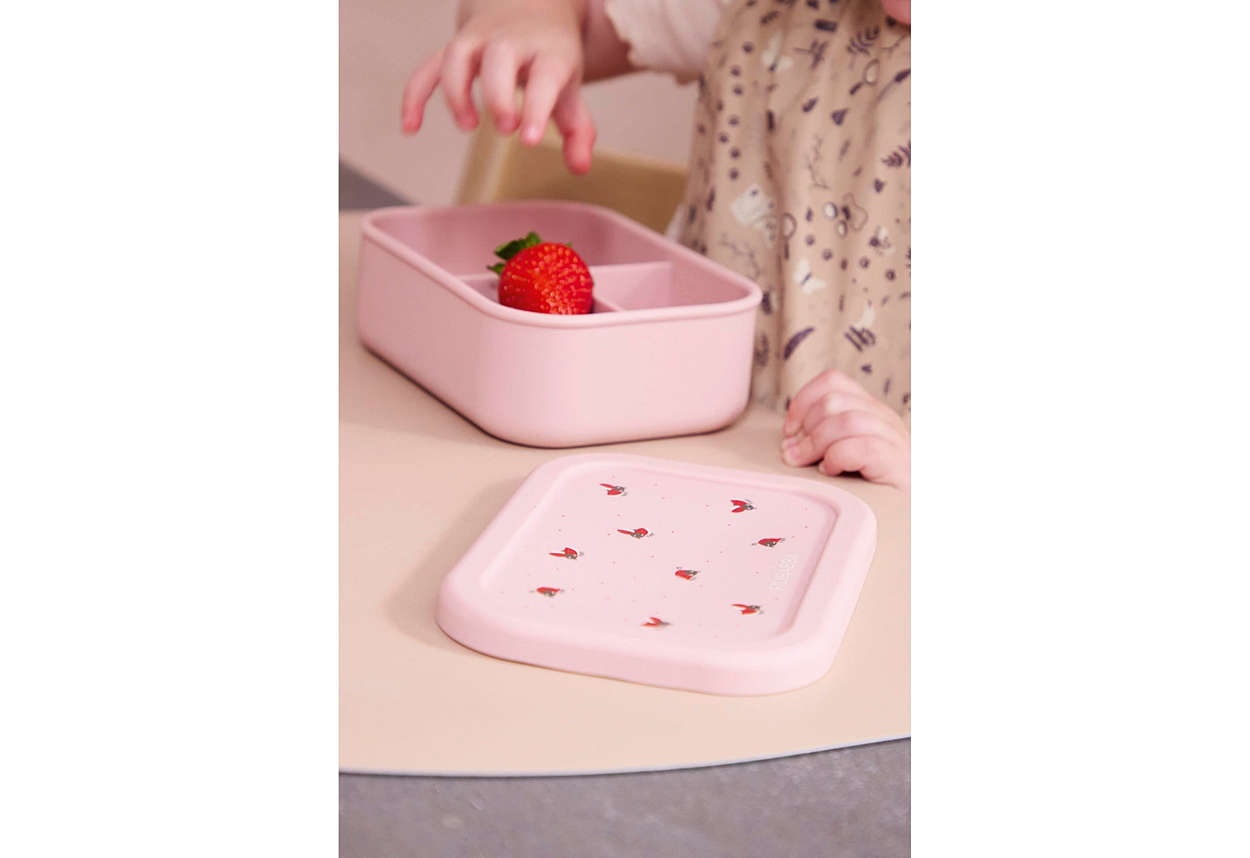 - Silikon, lebensmittelecht, aufgeteilt in 3 Fächer, spülmaschinengeeignet, backofengeeignet bei maximal 200°C (120°C für den Deckel), Gefrierschrank geeignet, ohne Deckel mikrowellengeeignet
