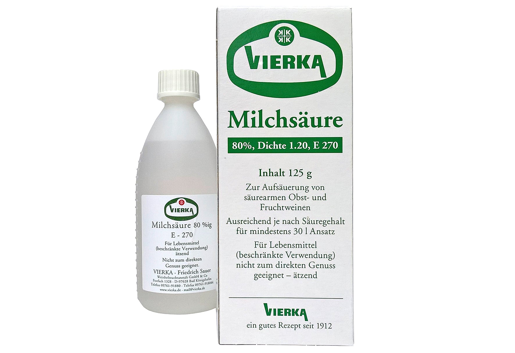 gegen biologischen Abbau stabil, ausreichend – je nach Säuregehalt – für mindestens 30 Liter Fruchtsaft bzw. Wein-Ansatz, vorwiegend rechtsdrehend, für die Verwendung für Lebenmittel im Haushalt und für Gewerbebetriebe zugelassen. 125 g