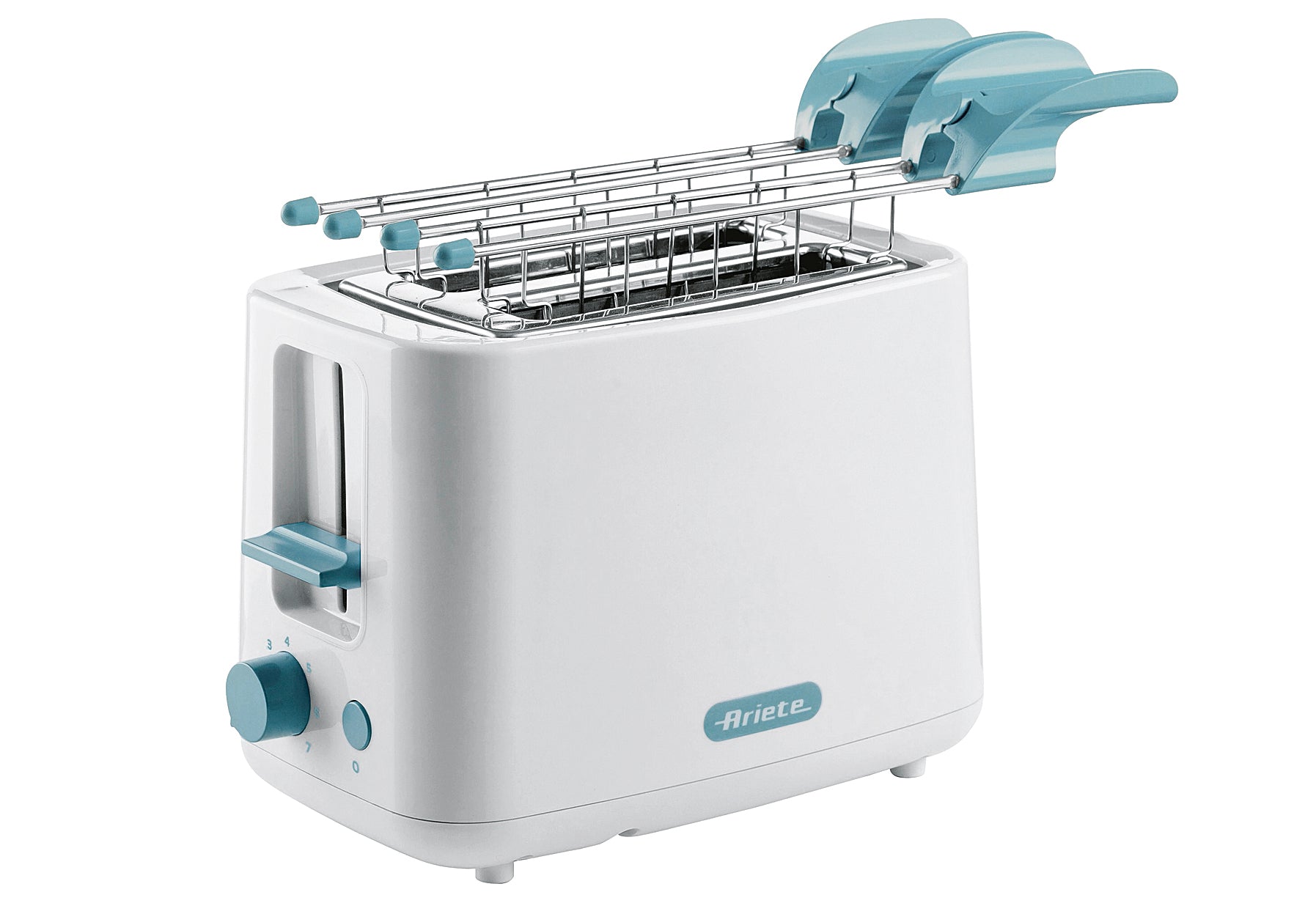2-Schlitz-Toaster mit Edelstahlzangen, Die neue Linie "Breakfast" von Ariete vereint Funktionalität mit klassischem Design, Qualität und Bedienkomfort. Das klassische Design passt in jede Küche. Mit den mit-gelieferten Sandwich-Zangen gelingen Ihnen z. B. perfekte Sandwiches für den kleinen Snack zwischendurch. | Passend zu dem Toaster gibt es: einen Wasserkocher und eine Kaffeemaschine., Unsere Produkteigenschaften: 7 fein abgestimmte Röststufen, Breite Röstschlitze – auch geeignet für Brötchenhälften, dicke Brotscheiben, Bagels oder auch Schinken- Käse- Sandwiches, Bagels u.v.m. | 2 Röstschlitze und getrennte Schachtheizung für perfekte Röstergebnisse, Stopp-Taste für sofortigen Abbruch des Bräunungsvorgangs, Mit "Cool-Touch"-Gehäuse und Kabelaufwicklung, Starke 760 Watt Leistung