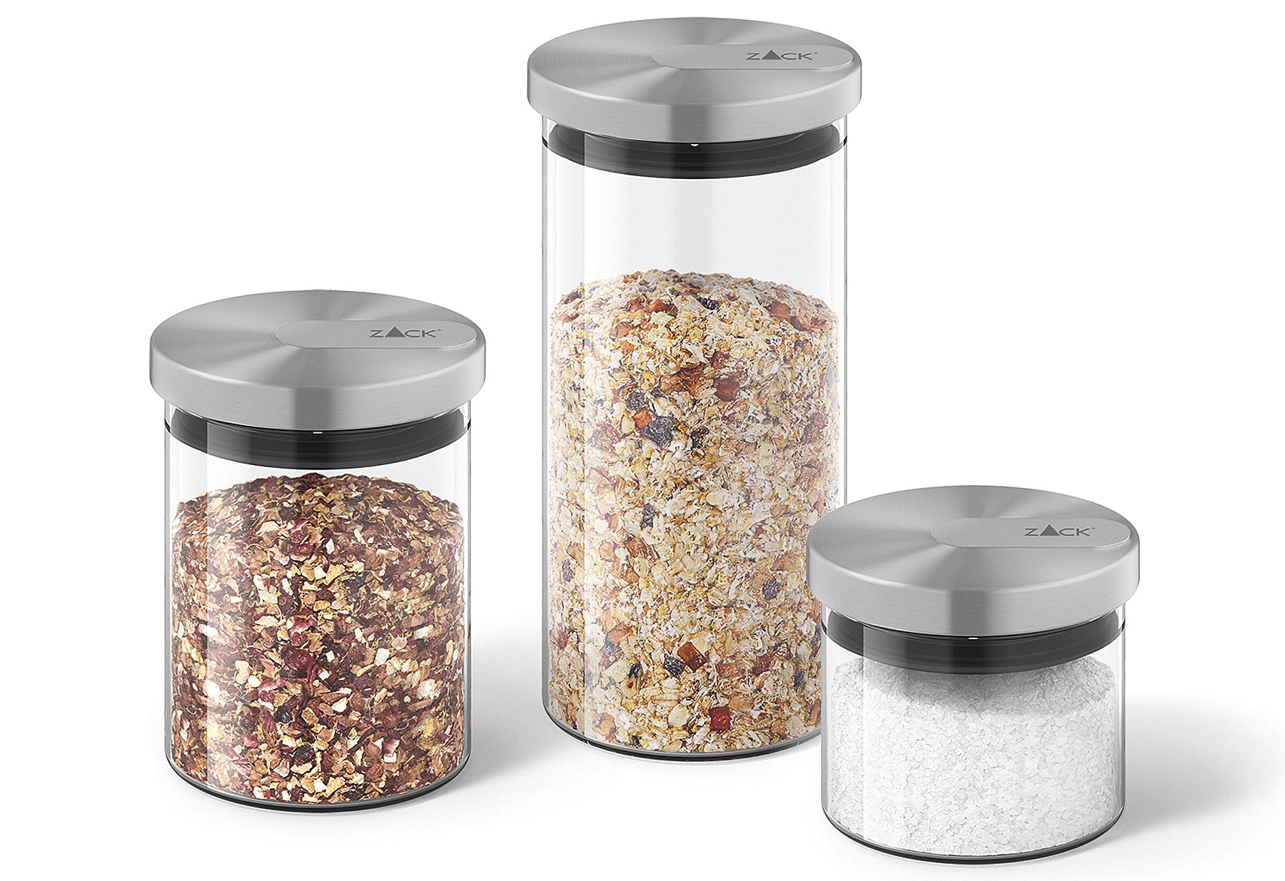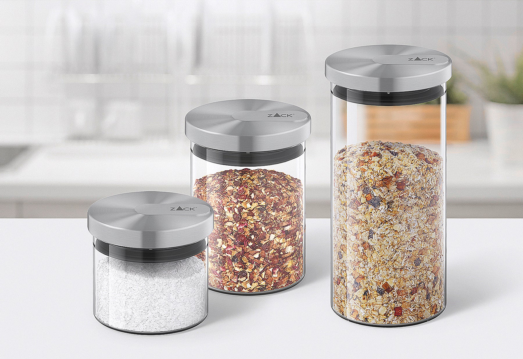 Borosilikatglas / Edelstahldeckel mit Kunststoffeinsatz und Silikonring zum luftdichten Verschließen, inklusive 4 selbstklebender schwarze Etiketten zum Beschriften, bruchfest, hohe Temperaturbeständigkeit, leicht zu reinigen, Lebensmittel bleiben länger frisch 1,1 l, Ø 10,5 cm, H 20,6 cm