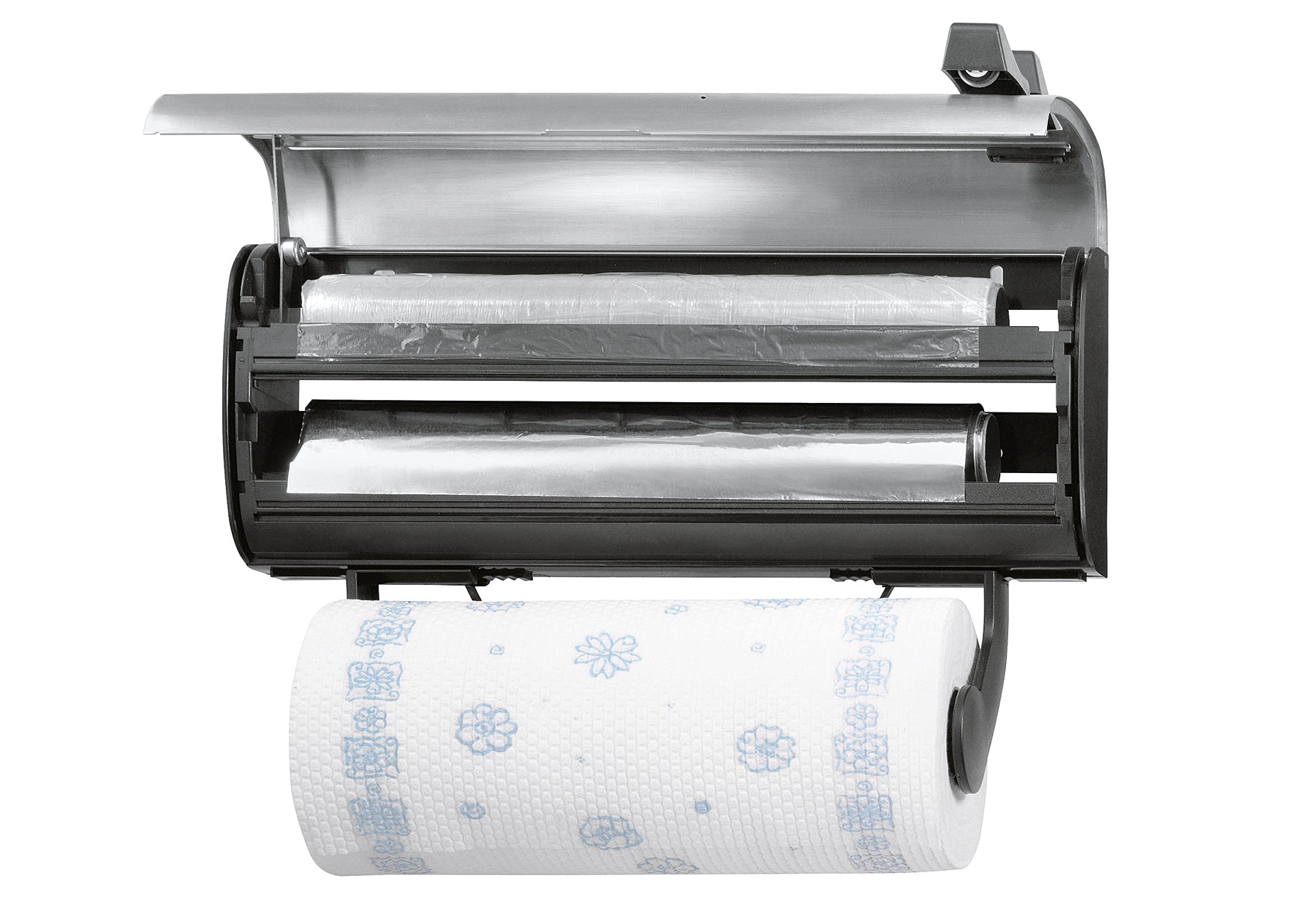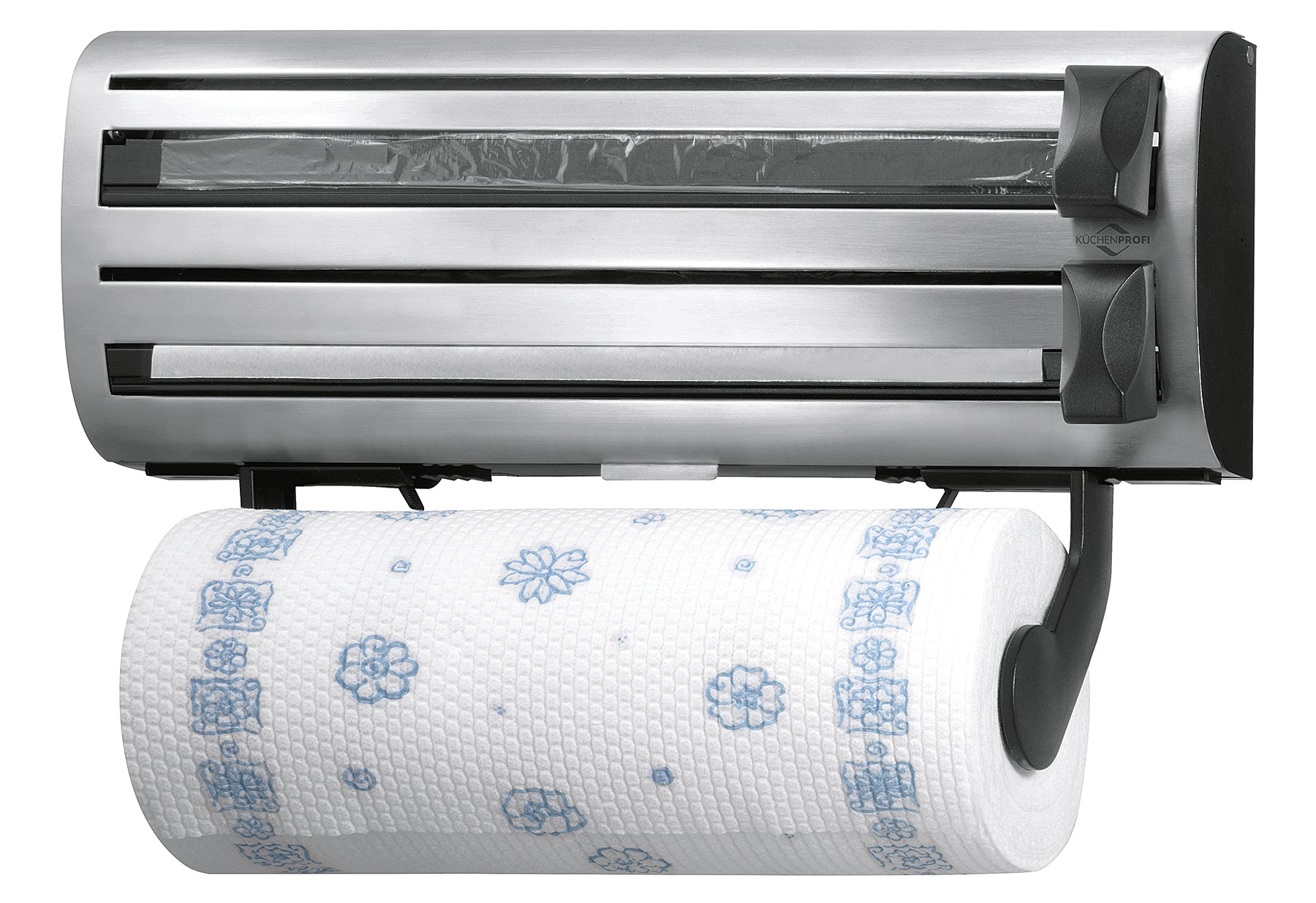 Edelstahl rostfrei / hochwertiger Kunststoff, inkl. Befestigungsmaterial, sauberes Abtrennen in beide Richtungen, Halterung für Papierrolle verstellbar, für Rollen bis max. 35 cm (LxBxH): 38x16x9 cm